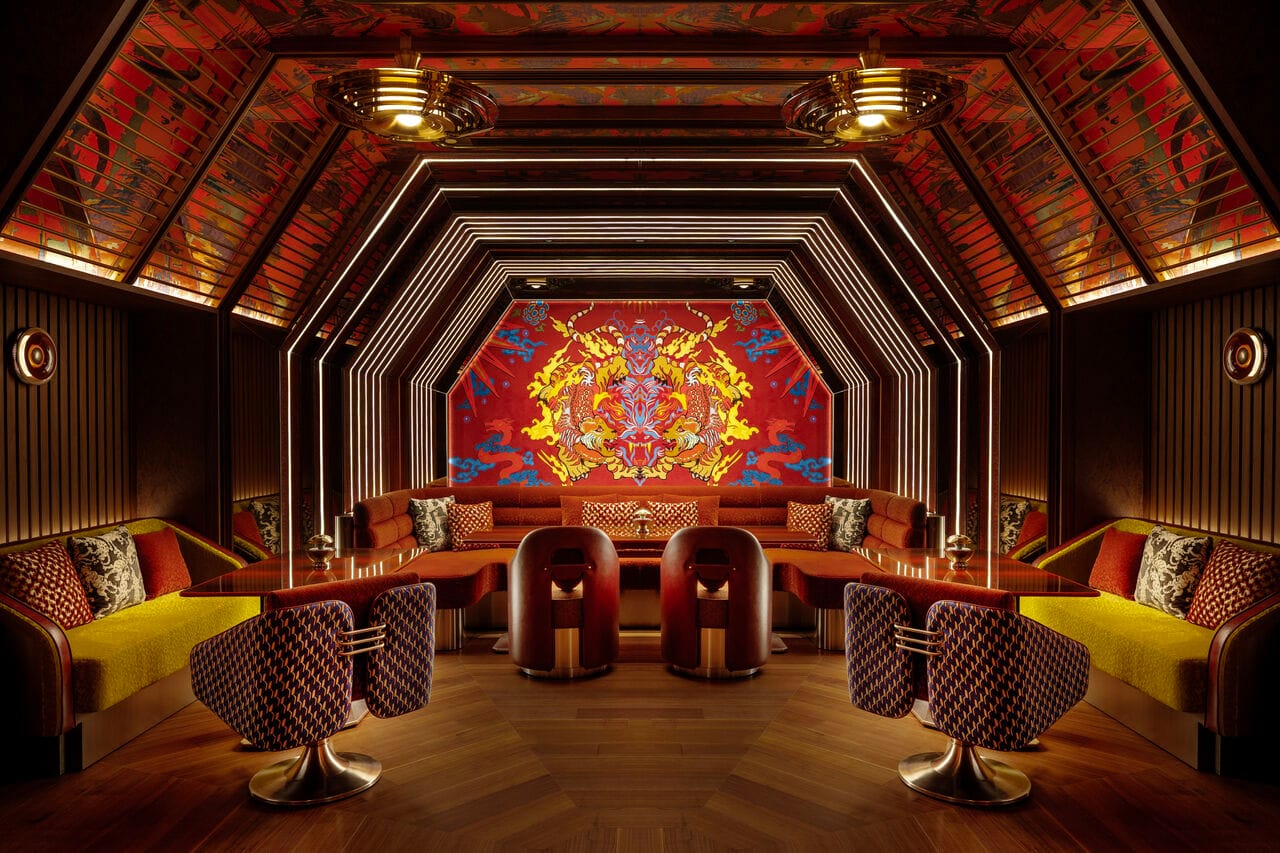 Saikindō’s concept draws inspiration from the Metabolism movement, renowned for its visionary, modular architecture and adaptable design that responds to changing needs. This forward-thinking philosophy is elegantly combined with the warmth of mid-century craftsmanship, creating a space that feels both intimate and social, where innovation meets timeless sophistication. The bar’s interiors will be meticulously composed of unique materials, from rich wooden panelling and bespoke acoustic detailing to intricately embroidered wallpaper and refined furnishings, shaping an intimate yet convivial atmosphere that invites connection and discovery. Every surface, texture, and detail of Saikindō will celebrate artistry, vibrant character and the rhythm of timeless music.