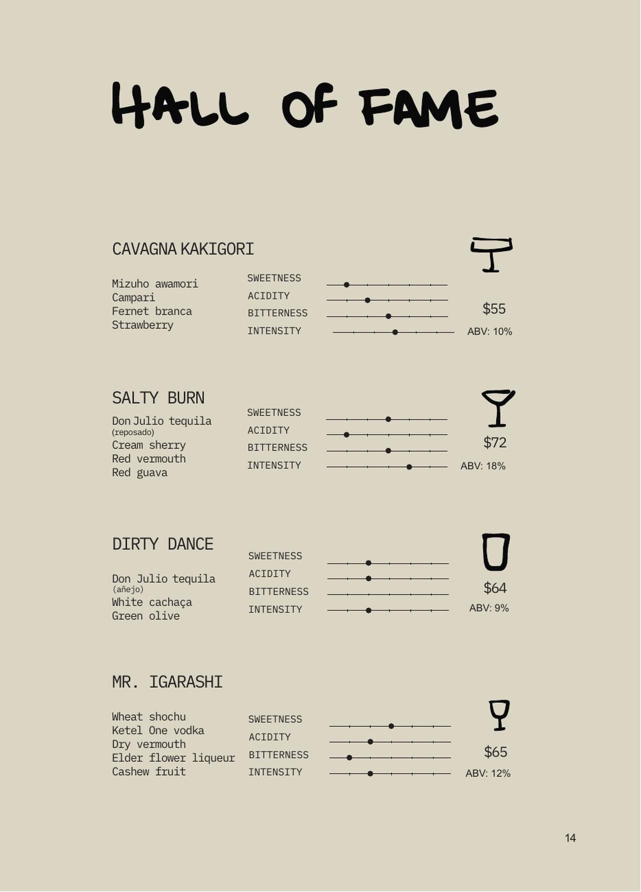 Yes, we always have a special section on our menu—a kind of Hall of Fame—with four or five drinks from our previous list that we keep.