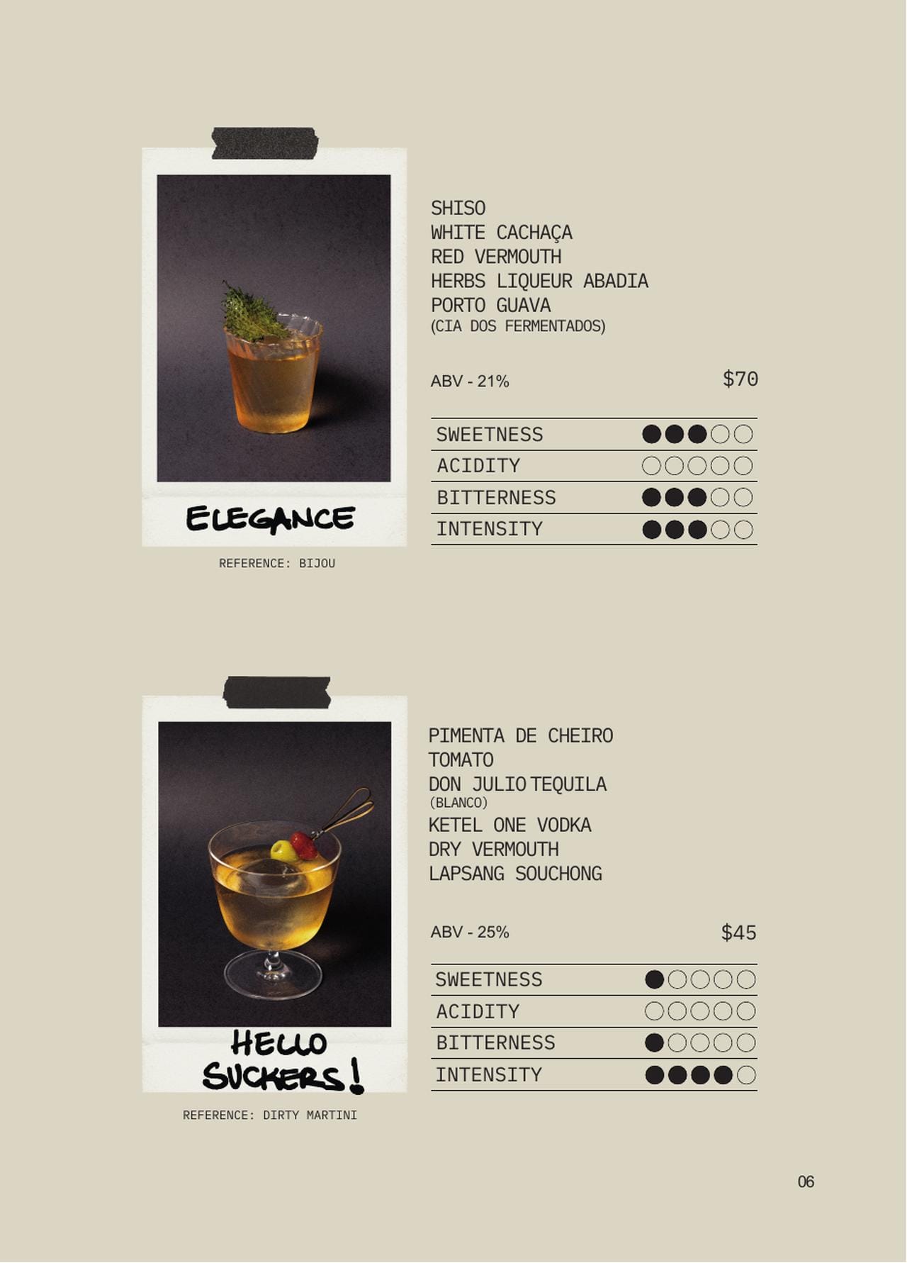During those first two years, when the team started traveling, our priority was getting our name out there. We released two menus called Duality I and Duality II that illustrated Tan Tan’s duality between kitchen and bar. We chose five ingredients with two cocktails for each: two Brazilian, two Japanese and one universal. The idea was to explore that duality—for example, one drink might use a syrup based on an ingredient, while the other used an infusion.